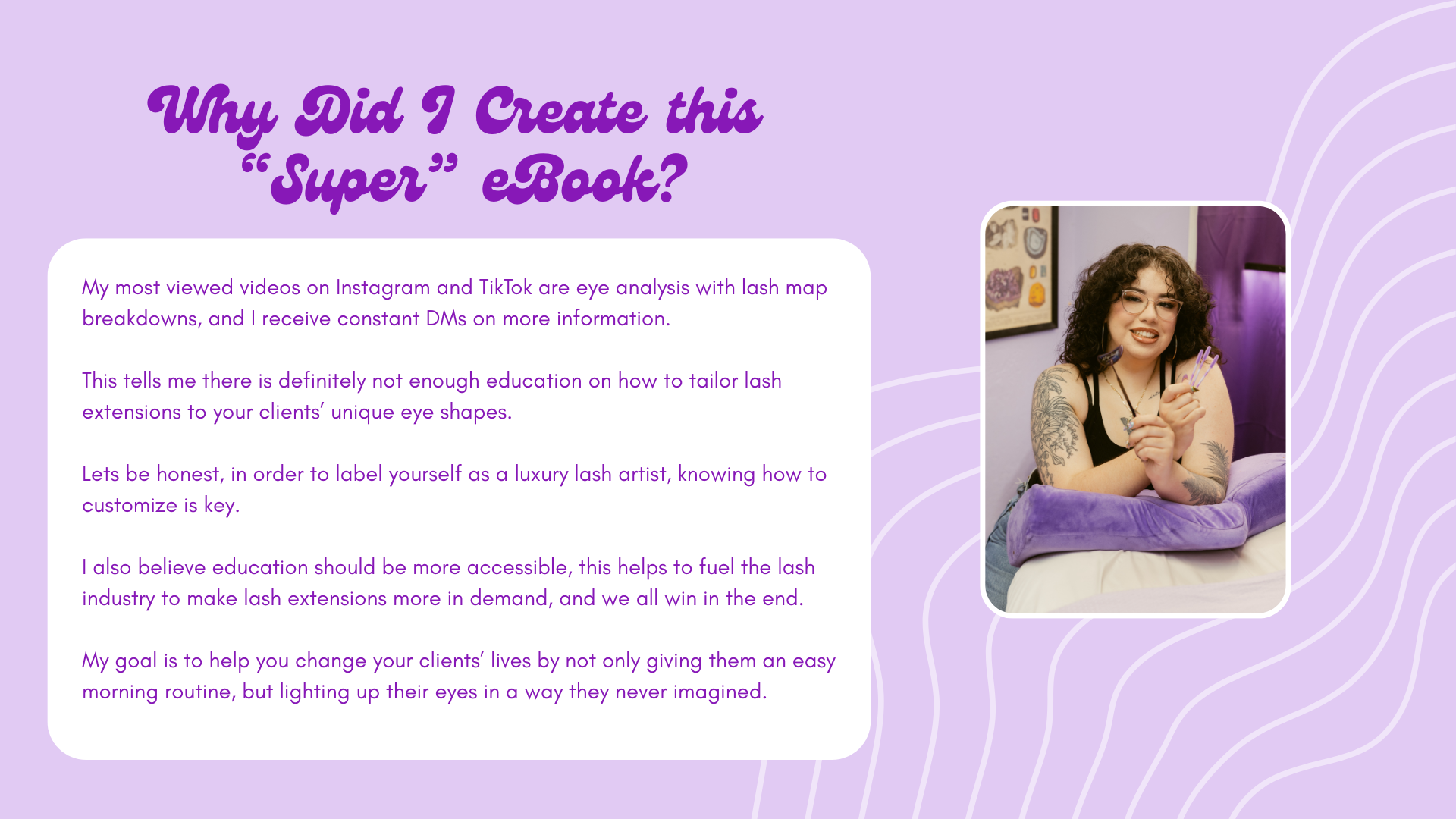 This eBook contains 50+ pages of pure knowledge that will truly exceed your expectations, and launch your lash career even further by allowing you to stand out from your local lash community.